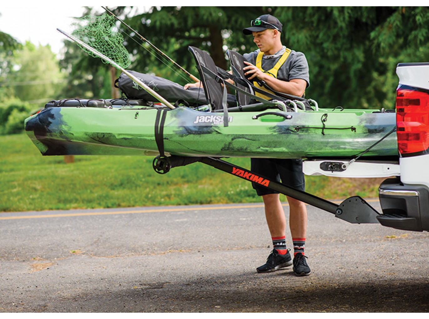 The LongArm truck bed extender easily extends the length of any truck bed up to 4 feet. Light and strong, the aluminum hitch mounted rack is the ideal solution for hauling fishing kayaks, boards, lumber, ladders and more. Adjustable to three distinct load-carrying positions and rated to carry up to 300 pounds in lower positions, the LongArm takes your truck bed to the next level.